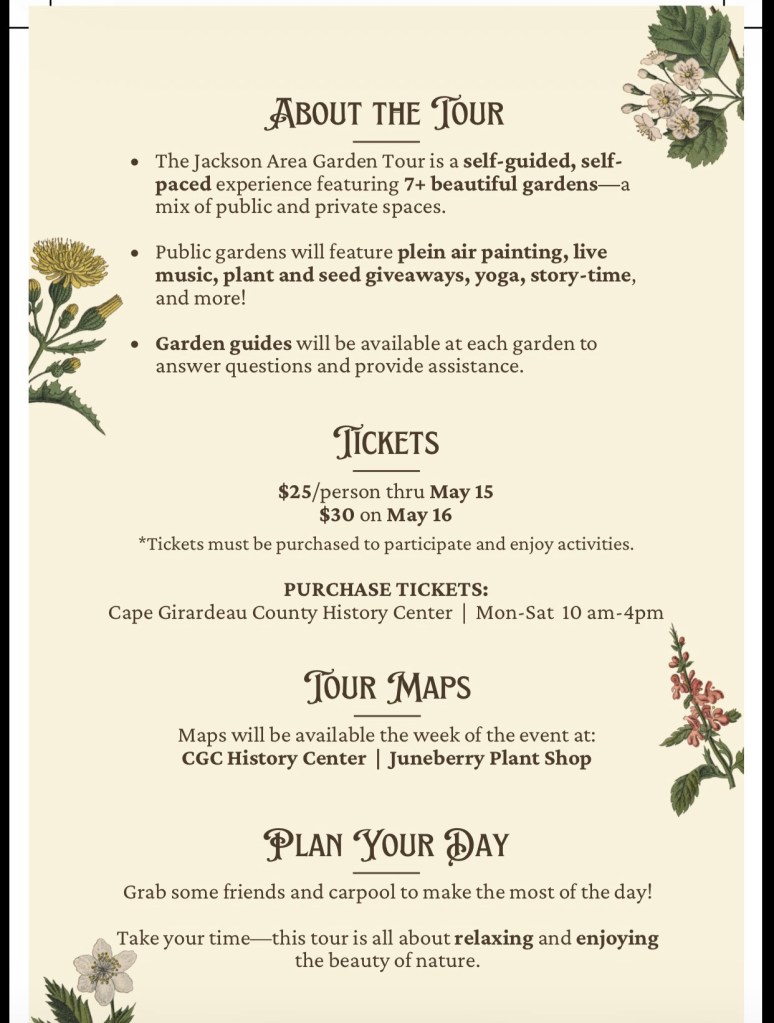 Garden Tour May 16 from 9am-2pm